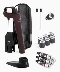 Elegant in mattschwarz und komplett mit essenziellen Accessoires – darunter Coravin Pure® Argon-Kapseln, Timeless Schraubverschlüsse und ein Timeless Aerator, der 90 Minuten Dekantierdauer in wenigen Sekunden liefert – ist es die perfekte Möglichkeit, rote, weiße oder Rosé-Weine zuhause mit vollem Vertrauen zu erleben.