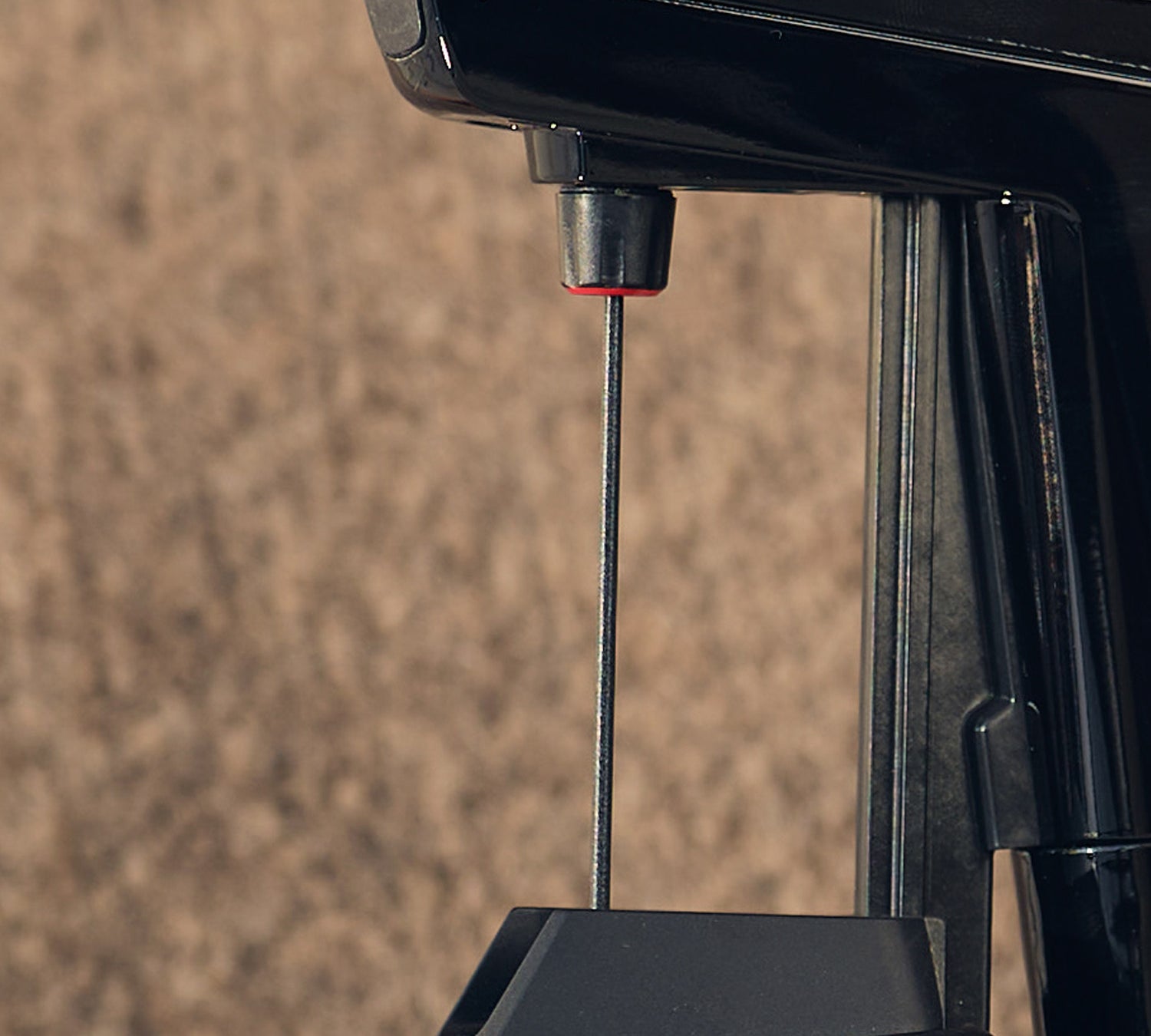 Schieben Sie das spitze Ende der neuen Nadel zurück in die Nadelführung. Schrauben Sie den Nadelgriff in das System, bis er einrastet. Sie sind bereit zum Gießen!